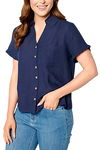 AnyBody Women's Short Sleeve Button Front Linen Blend Camp Shirt Navy