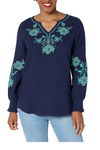 Belle Beach by Kim Gravel Women's Gauze Embroidered Peasant Top Twlght