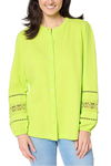 Belle Beach Women's Cotton Gauze Ladder Lace Button Up Top Lime Citrus