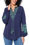 Belle Boho by Kim Gravel Women's Embroidered Peasant Top Twilight