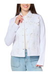Belle by Kim Gravel Women's Eyelet Jacket Knit Sleeves White