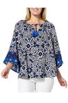 Colleen Lopez Women's Printed Woven 3/4 Raglan Sleeve Top Navy