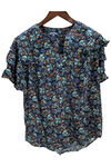 Democracy Women's Triple Flounce V-Notch Quilted Top Navy Floral