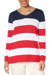 Denim & Co. 100% Cotton Striped Long Sleeve V-Neck Sweater American