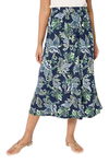 Denim & Co. Women's Linen Blend Midi Skirt w/ Pockets Navy Paisley