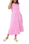 Denim & Co. Women's Linen Blend Puff Sleeve Midi Dress Orchid