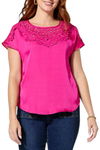 DG2 by Diane Gilman Women's Silk Crochet Lace Yoke Dolman Top Hot Pink