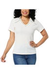 DG2 Women's Knit Plissé V-Neck Top w Studded Trim Alabaster