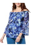 G by Giuliana Women's Off-the-Shoulder Printed Aria Mesh Blouse Blue