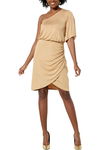G by Giuliana Women's One-Shoulder Shimmer Knit Dress Iced Coffee/Gold