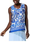 G by Giuliana Women's Textured Satin Tank Top Blue Floral