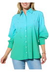 G by Giuliana Women's Woven Dip Dye Button-Up Shirt Blue /Bright Jade