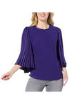 IMAN Global Chic Women's Satin Pleated Sleeve Top Violet