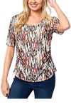 Jaclyn Smith Women's Scoop Neck Side Ruched Tee Brown Combo