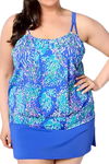 Susan Graver Women's Soleil Tiered Tankini w Skirt/Brief Navy Tropical