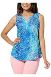 Nina Leonard Women's Sleeveless Burnout Top w Curved Hem Blue Multi