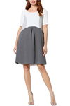 Nina Leonard Women's Textured Wave Color Blocked Dress Ivory/Lt Gray