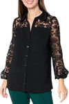 Nina Leonard Women's Textured Wave & Embroidered Mesh Top Black