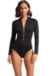 Seafolly Women's Zip Front Surfsuit Swimsuits One Piece Black