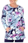 Sport Savvy Women's All Day French Terry Floral Pocket Pullover Navy