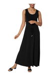 Susan Graver Women's Liquid Knit Belted Scoop Neck Maxi Dress Blk