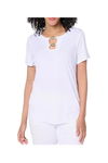 Susan Graver Women's Liquid Knit Cap Sleeve Top w Keyhole Trim White