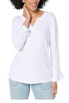 Susan Graver Women's Liquid Knit Split Neck Top w Flounce Slv White