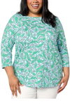 Susan Graver Women's Printed Comfy Cotton Bateau Neck Top Green/Aqua