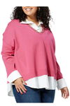 WynneLayers SoftKNIT Mixed Media Sweater w/ Lapel Collar Pink/White